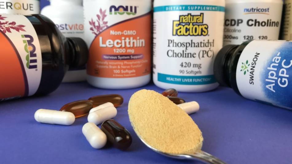 Many foods are good sources of choline, particularly egg yolks, meats, and legumes (see Getting It from Food). Lecithin, typically extracted from raw soybean or sunflower seed oils, is also a convenient food source of choline due to the phosphatidylcholine that it contains. (Lecithin is also a source of phosphatidylserine, which we have reviewed separately.) Supplements can also provide choline in a variety of forms, including phosphatidylcholine, alpha-GPC, CDP-choline (citicoline), choline bitartrate, and choline citrate. We purchased and tested products containing each of these forms. -